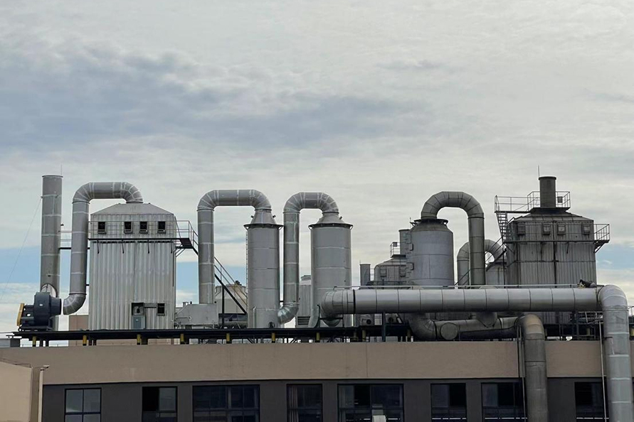 在磷化工、石墨、有色冶煉等行業(yè),生產(chǎn)排放的飽和濕煙氣與低溫環(huán)境空氣接觸時(shí),在煙氣溫度下降過程中,煙氣中的水蒸氣過飽和凝結(jié),凝結(jié)水滴折射和散射光線,使煙羽呈白色或灰色,稱為濕煙羽。由于冬季溫度較低,相關(guān)問題的環(huán)保投訴較多。那么,有哪些種煙氣脫白技術(shù)?各種煙氣脫白的技術(shù)原理是怎樣的?1、冷凝相變煙氣脫白技術(shù)冷凝相變煙氣脫白原理為:煙氣經(jīng)濕法脫硫后,含濕量上升,為B狀態(tài),進(jìn)入換熱消霧模塊后。干態(tài)空氣A入換熱消霧模塊兩者交換后,A溫度上升,含濕量不變,相對(duì)濕度降低,處于C。B煙氣,溫度降低,相對(duì)濕度不變,含濕量降低,液滴析出,轉(zhuǎn)為D。D和受熱C流出換熱消零模塊,在氣室中混合,使D溫度下降,濕度降低:C溫度上升,相對(duì)濕度上升,兩種狀態(tài)的煙氣混合,最終達(dá)到F狀態(tài),AF連線始終處于不飽和狀態(tài),因此,不會(huì)出現(xiàn)可見白煙或霧氣團(tuán)。可以看出,冷凝混風(fēng)技術(shù)是煙氣脫白的較好技術(shù)路線,特別是在北方寒冷地區(qū),單純的煙氣再熱很難消除煙囪白煙。2、低電耗離子束煙氣脫白技術(shù)低電耗離子束煙氣脫白原理為:高速電子射流擊穿煙氣,產(chǎn)生正負(fù)離子體基團(tuán),煙氣中氣溶膠、飽和水滴、微小顆粒物在離子束的撞擊下,不斷發(fā)生凝聚效應(yīng),顆粒物和水滴快速凝聚成團(tuán),在重力作用下,落到離子束除變器底部流入脫硫塔或廢水收集池,達(dá)到降解顆粒物,氣溶膠和水零的目的。廢氣中的氨氧化物,由高速電子束提供能量,快速與氨氣發(fā)生還原反應(yīng),生成副產(chǎn)物水。低電耗離子束煙氣脫白優(yōu)點(diǎn):1.放電產(chǎn)生的離子體中,電子能量高,幾乎可以和所有的惡臭氣體分子作用。2.反應(yīng)快,不受氣速限制。采用防腐蝕材料。3.用電成本低,操作極為簡單,無需派專職人員看守,基本不占用人工費(fèi)。4.設(shè)備啟動(dòng)、停止十分迅速,隨用隨開,不受氣溫的影響。
